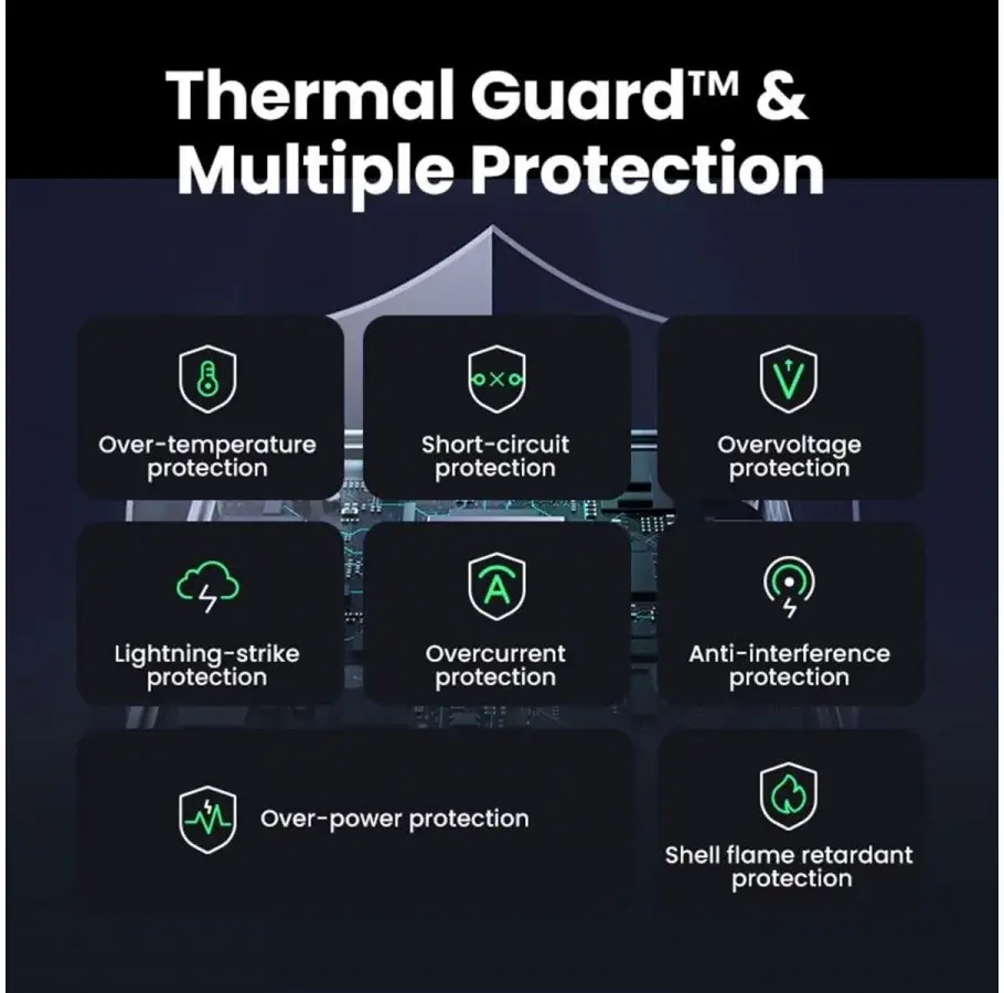 The charger supports multiple fast charging protocols such as Power Delivery (PD), PPS and Quick Charge, making it work with almost all modern devices. In addition, built-in protections ensure that your devices are protected against overheating, overvoltage and short circuits.